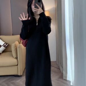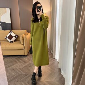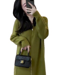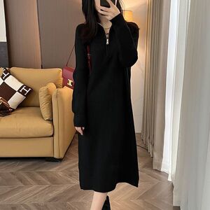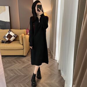半拉链高领长袖针织连衣裙女2025秋冬季时尚百搭减龄显瘦直筒裙潮