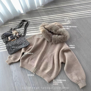 CallmeEar//大毛领毛衣开衫外套女秋冬宽松显瘦软糯针织衫