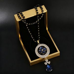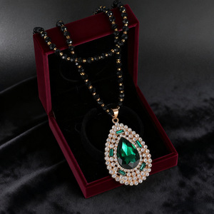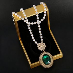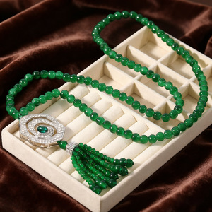 新中式墨绿宝石镶钻毛衣链2025秋季新款毛衣配饰轻奢高级感女项链