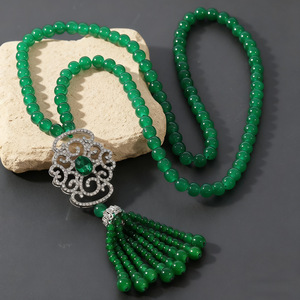 XL705珍珠流苏绿玛瑙项链