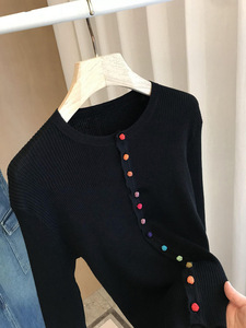 这小衫也太好看了吧!羊毛款~中式彩色纽扣圆领针织衫外套
