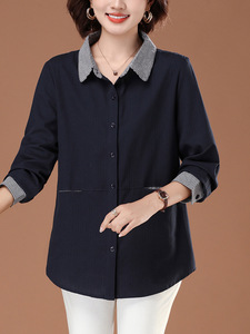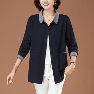 纯棉长袖翻领衬衫女长袖百搭加肥加大码洋气外穿中年妈妈休闲上衣