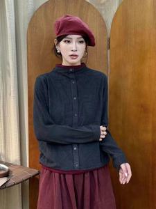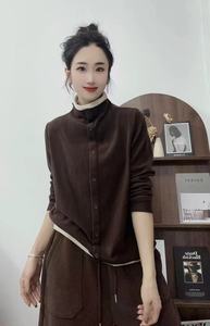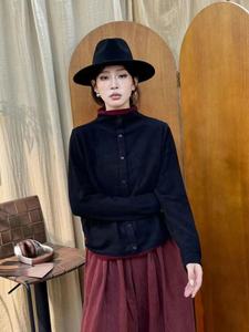 秋冬款 韩版宽松简约双面澳绒拼色半高领套头T恤百搭保暖打底衫女