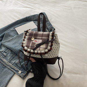 学生小书包女2025新款潮时尚洋气格纹双肩包小众芭蕾风手提背包