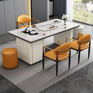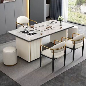 现代轻奢简约岩板茶桌椅组合阳台办公室小茶几烧水壶石板茶台一体