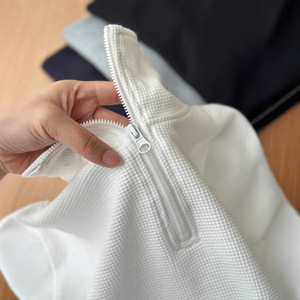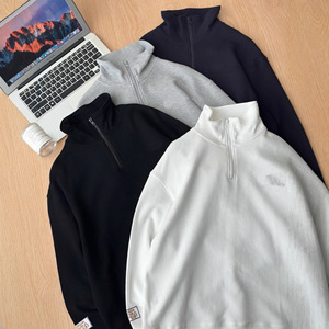 X124秋新款情侣简约立领卫衣男潮牌宽松华夫格纯色半拉链运动上衣
