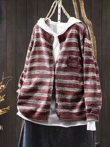 秋季新款 彩线棉线针织开衫毛衣外套女长袖复古休闲上衣26012