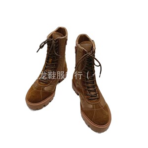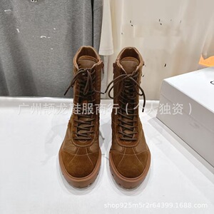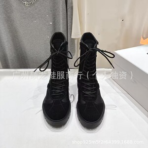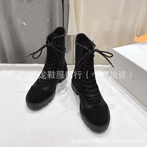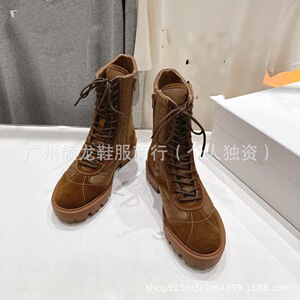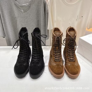 高端2025秋冬凯旋门真皮圆头英伦风复古拼色系带机车靴短靴马丁靴