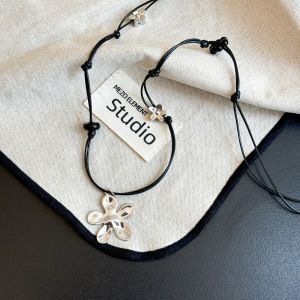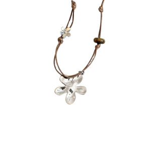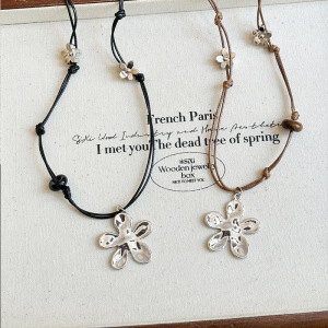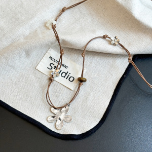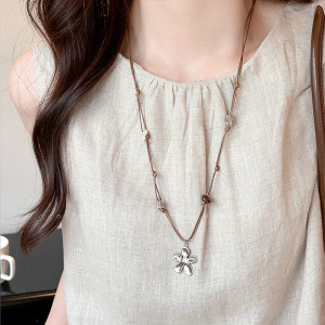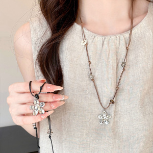 编织绳串珠小花朵项链女秋复古抽拉可调节配饰长款个性百搭毛衣链