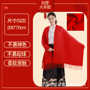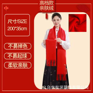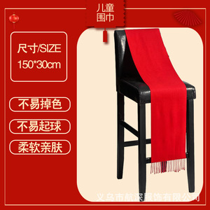 红围巾定制logo印字刺绣图案大红色围巾中国红上市大红色大红年会