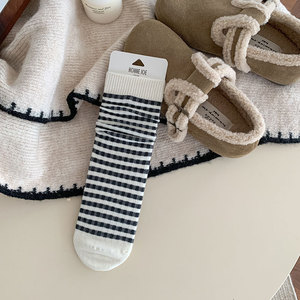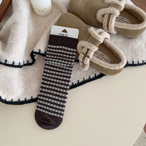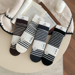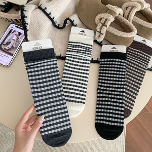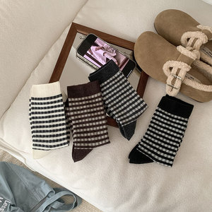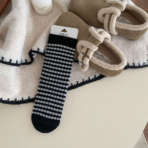 中筒袜子女秋冬无骨羊毛袜保暖拼色格子袜韩版ins风东大门堆堆袜