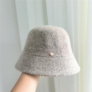 高级感日系简约羊毛呢渔夫帽女秋冬素颜遮脸水桶帽显脸小保暖盆帽