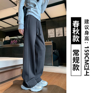 运动裤女秋季2025新款小个子气质阔腿裤高腰休闲宽松窄版休闲卫裤