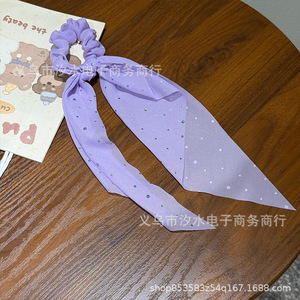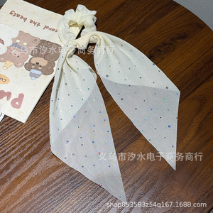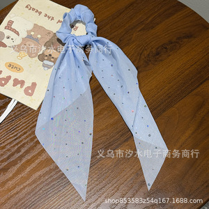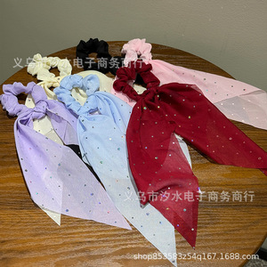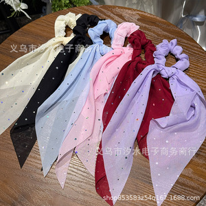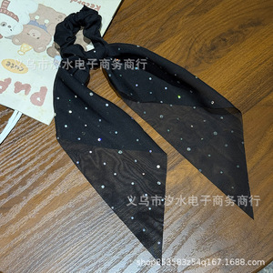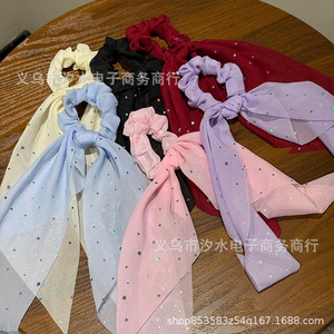 6色小肠圈纯色亮片圆点发饰飘带头饰女后脑勺扎马尾黑色红色发圈