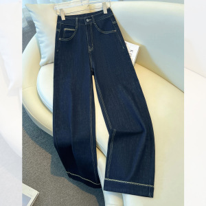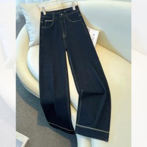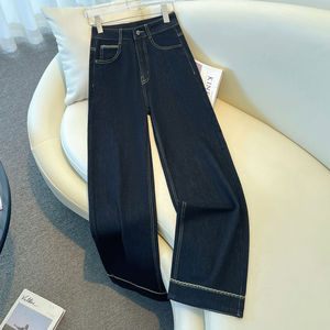 高腰丹宁蓝阔腿牛仔裤女春秋季2025新款时尚潮流直筒裤深色拖地裤