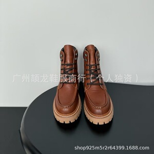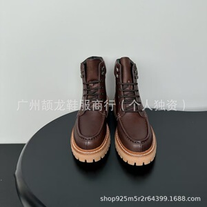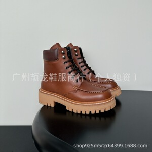 高端2025秋冬P家真皮圆头英伦风复古厚底系带休闲短靴机车马丁靴
