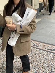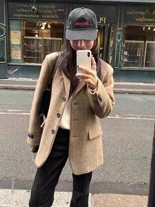 现h 韩国UNDERSON东大门2025秋冬新款气质人字纹羊毛西装外套女