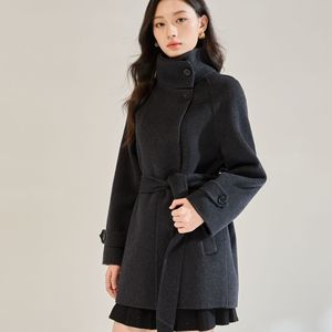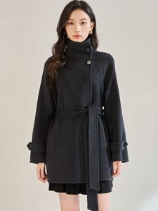 25冬新款气质高级感半高领两穿领高级感双面呢外套中长款女22674