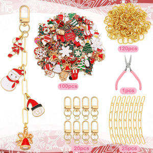 286PCS创意DIY圣诞节系列钥匙扣套件 带延长链条 开口跳环 钳子
