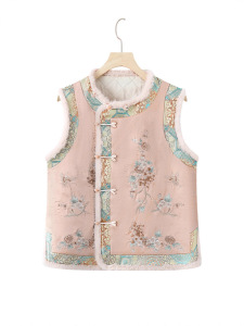 批发秋冬新中式圆领盘扣重工刺绣格格装马甲国风圆领夹棉加厚外穿