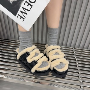 欧洲站2025秋季时尚羊羔毛拖鞋女厚底休闲外穿洋气毛毛拖鞋女潮鞋