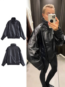 跨境欧美风速卖通秋冬新款时尚气质女装批发荔枝纹皮夹克