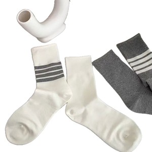 袜子中筒袜韩版ins百搭黑白灰色中筒袜春秋季学院条纹运动袜子女
