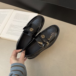 山茶花厚底圆头小皮鞋子女学院风软底通勤百搭懒人鞋一脚蹬乐福鞋