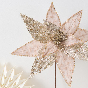 跨境新款 ins韩系香槟色圣诞花大亮片高档重工仿真花圣诞节装饰品