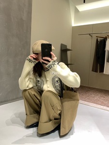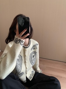 【高品质订货】韩版简约复古日常通勤小众图案圆领单排扣保暖毛衣