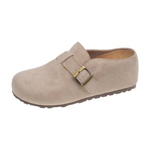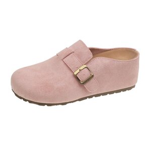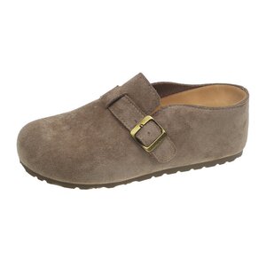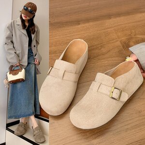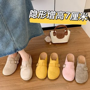 牛皮版!内增高7公分勃肯半拖鞋女圆头百搭休闲懒人一脚蹬包头拖鞋