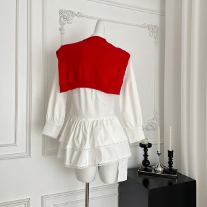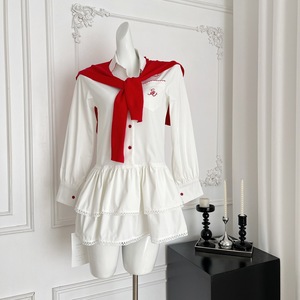 实拍 iNSLiiSA早秋撞色衬衫长袖连衣短裙学院风新款韩系小众裙子