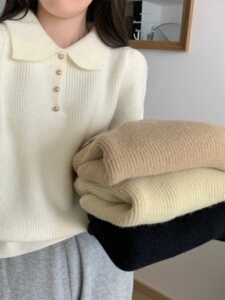 秋冬宽松polo领打底针织衫女软糯学院风高级洋气内搭气质别致毛衣