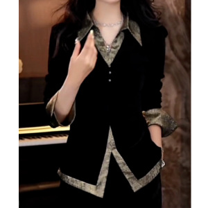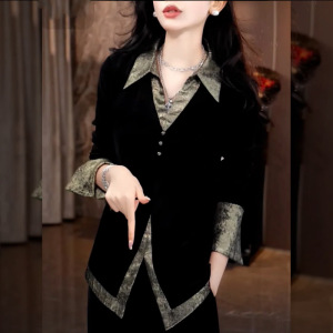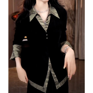 假两件别致时尚衬衣女2025秋季新款韩版翻领长袖上衣宽松洋气衬衫