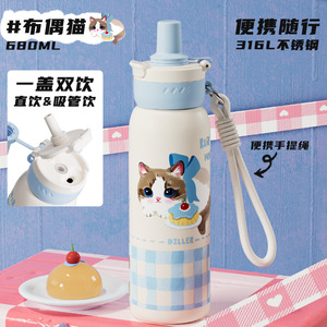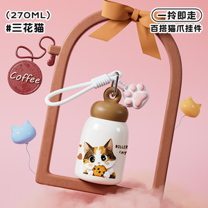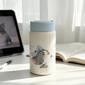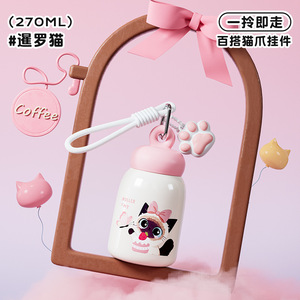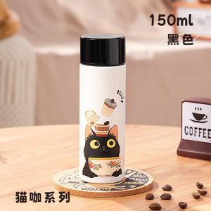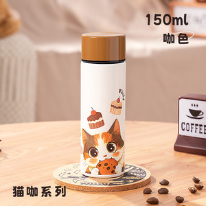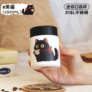 迪乐贝尔316不锈钢学生保温杯女生高颜值猫咪新款便携迷你口袋杯