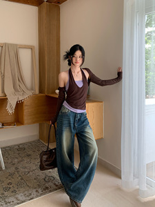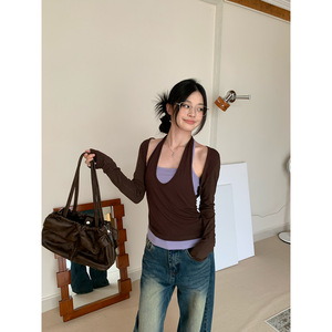 咖色坎肩开衫