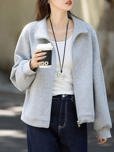 都市简约风纯色立领外套女2025秋季新款设计感分割松弛感休闲上衣