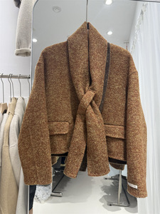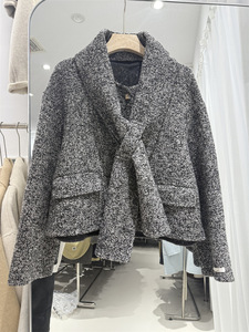 围巾圆领单排扣落肩袖翻盖口袋立体裁剪双面羊毛大衣女秋冬百搭