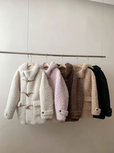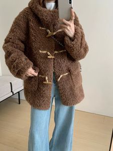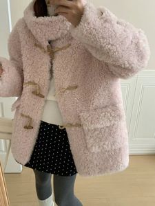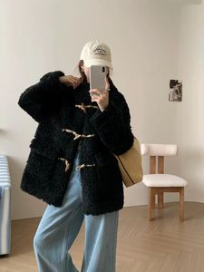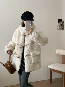 加厚牛角扣中长款仿羊羔毛开衫2025秋冬新款毛茸茸皮毛一体外套女