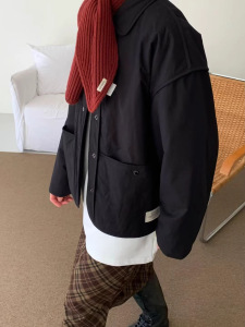 7t韩国东大门同款2025年秋新SELF纯色宽松慵懒风衬衫领夹克外套