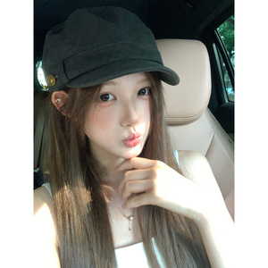 日系复古纽扣平顶鸭舌帽女2025早秋新款文艺报童帽大头围贝雷帽子