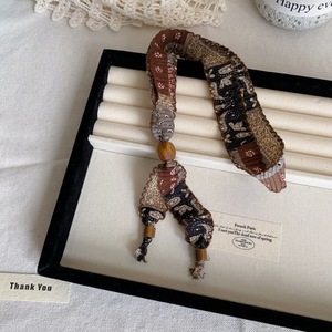 早秋氛围感!复古腰果花丝巾项链女2025年新款串珠毛衣链挂脖配饰