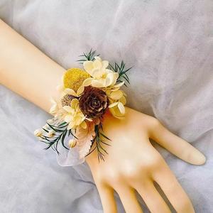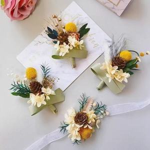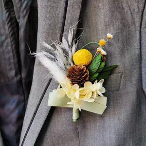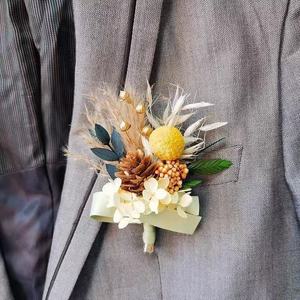 森系复古胸花黄球花松果组合婚礼新郎伴郎配饰小众婚庆花艺小饰品