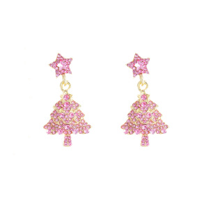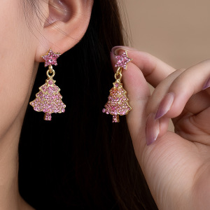 银针欧美跨境圣诞树五角星镶钻耳钉节日氛围时尚气质精致耳饰女