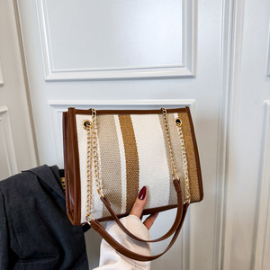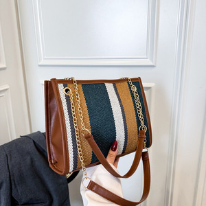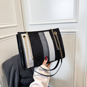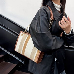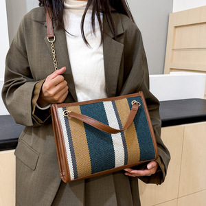时尚条纹2025新款潮流撞色大容量托特女单肩手拎斜挎通勤大包包女