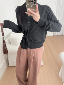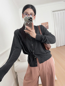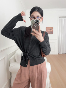 ARK25秋冬新款羊毛圆领长袖开衫灰色错位纽扣个性上衣 1296454001