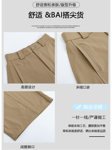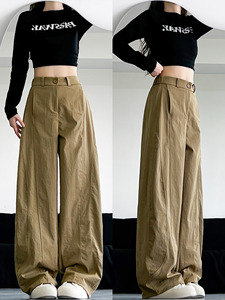 卡其色阔腿弯刀工装裤女秋季2025新款小个子慵懒风休闲显瘦直筒裤