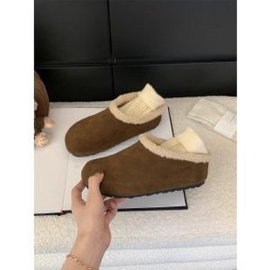 厚底内增高博肯包头半拖鞋女复古一脚蹬懒人鞋加绒保暖毛毛博肯鞋