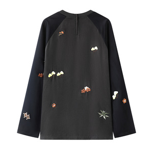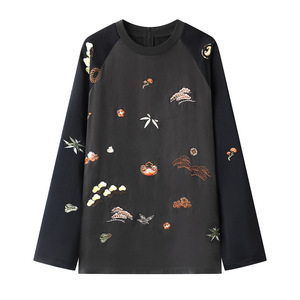 现货2025冬新款简约宽松撞色拼接刺绣圆领长袖卫衣2J4D523
