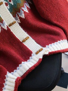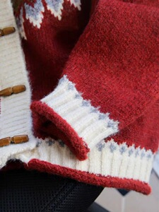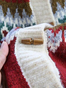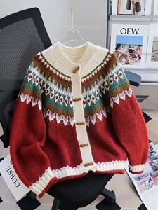 工厂定制费尔岛复古提花红色毛衣外套女秋冬慵懒风宽松针织开衫